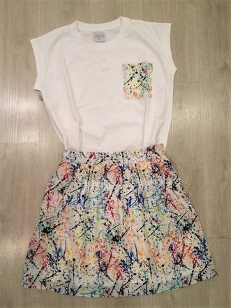 Si te inclinas más por un look casual chic donde la falda sea la protagonista, te proponemos este dos piezas de la boutique BLONDIE. La falda con estampado Urban Art multicolor alegrará tus días y la camiseta con bolsillo estampado en los mismos motivos cerrarán un outfit muy divertido. Atrévete a combinar las piezas por separado y obtén looks diferentes cada día. Camiseta y falda, por menos de 50 euros.