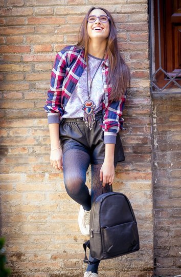 En La Guía de Moda siempre nos gusta ofrecerte un look completo, por eso nunca dejamos de lado los complementos, que como tantas veces insistimos son igual de importantes. Para este look juvenil la modelo porta además de una mochila de Euphoria un collar étnico de Princess que le da el toque chic a este total look grunche tan juvenil.