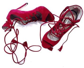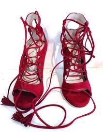 Sandalias de tacón trenzadas de Hannibal Laguna en color rojo pasión