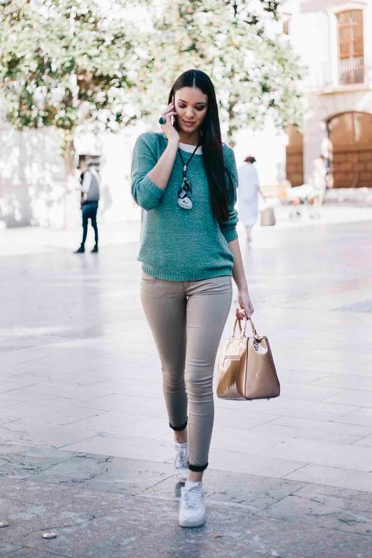 Sobre los hombros llevamos nuestro aliado para cuando refresque, un precioso jersey de algodón en un verde esmeralda muy favorecedor que resaltará nuestro maquillaje, este imprescindible básico también de la boutique Euphoria.