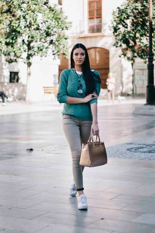 Sobre los hombros llevamos nuestro aliado para cuando refresque, un precioso jersey de algodón en un verde esmeralda muy favorecedor que resaltará nuestro maquillaje, este imprescindible básico también de la boutique Euphoria.